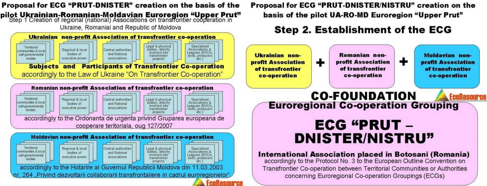 Ініціювання такого процесу може починатись з найпростіших угод про транскордонне співробітництво громад на стику UA-RO-MD кордонів: Мамалигівської від України, міста Дарабань у Румунії та межуючої з ними Кривської громади в Молдові, з подальшим поширенням у Дністровському районі Чернівецької області, Ботошанському повіті Румунії та у Бриченському районі Молдови, які всі входять до «Верхнього Прута». |
