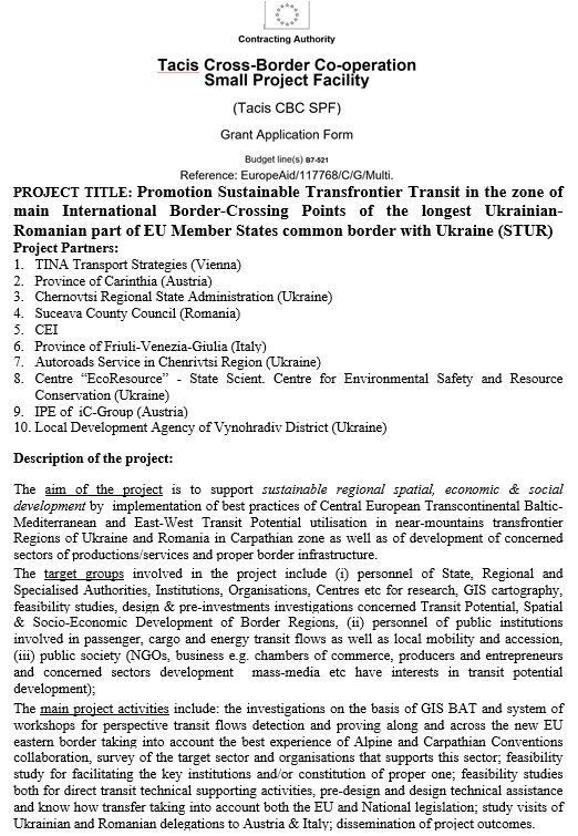Рис.3. Спільна заявка на проєктування відновлення транс’європейського транзиту через Єврорегіон «Верхній Прут» з використанням досвіду Альпійського регіону. |
