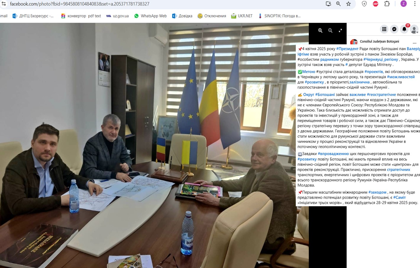 Для узгодження такого підходу у квітні 2025 року відбулись консультації з новим керівництвом Ботошанського повіту (Рис 5а), яке надалі очолюватиме Єврорегіон «Верхній Прут». Для спрощення процесу формування тристороннього EGTC було запропоновано започаткувати його за вищеописаним принципом дворівневого асоціювання (Рис 5,б), але через полегшену процедуру формування Об'єднань єврорегіонального співробітництва (EGC). Ця форма транскордонної співпраці також передбачена оновленим Законом України згідно з ІІІ (Утрехтським) Протоколом Мадридської конвенції під егідою Ради Європи. |