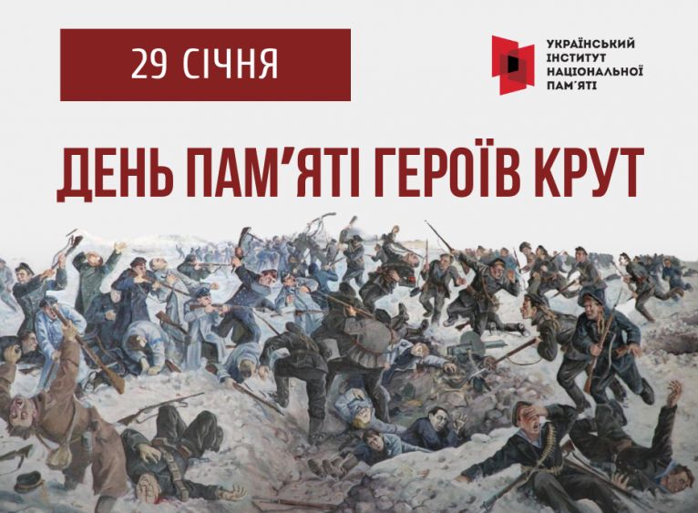 29 січня в Україні відзначають річницю бою під Крутами, який для Українського народу став символом героїзму та самопожертви молодого покоління в боротьбі за незалежність, прикладом для сучасних захисників України, як успішно боротися проти численного ворога. Історична довідка, підготовлена Українським інститутом національної пам'яті Ключовими подіями першого року Української революції 1917–1921 років стало постання Української Центральної Ради та створення нею Української Народної Республіки. Більшовики, прийшовши до влади в Росії після жовтневого перевороту 1917 року, прагнули встановити контроль над Україною і розглядали Центральну Раду як серйозного суперника. У грудні 1917-го розпочали збройний наступ на Україну. В середині січня вони захопили майже все Лівобережжя та просувалися на Київ. У таких умовах війни Центральна Рада проголосила 22 січня 1918 року незалежність Української Народної Республіки. Після захоплення Полтави вздовж залізниці на захід наступала так звана 1-ша Революційна армія, а з Гомеля на Бахмач – 2-га. Там, де сходилися дві залізничні колії, вони планували об’єднатися. Тривалий час найбоєздатнішою українською частиною на Чернігівщині був бойовий відділ 1-ї Української військової юнацької школи сотника Аверкія Гончаренка. 25–27 січня вони разом з іншими військовими підрозділами та добровольцями героїчно обороняли вузлову залізничну станцію Бахмач. Однак без артилерії під загрозою оточення оборонці вимушено відступили до станції Крути й стали укріплюватися. 28 січня в Бахмачі обидві радянські армії з’єдналися під командуванням Муравйова й почали рухатися в бік Києва. На підступах до столиці Муравйов закликав: «Товариші, я знаю, що багато хто з вас втомився, проте небагато вам працювати. Наше завдання – взяти Київ і тоді ви зможете повернутися додому. Багато вам довелося страждати, але вони кров’ю відповідатимуть за ваші страждання. Ми їм покажемо, дайте тільки добратися до Києва. Якщо буде потрібно, нічого не пошкодую: каменя на камені не залишу в Києві. Мешканців не жаліти, вони нас не жаліли, терпіли хазяйнування гайдамаків. Ми їх усіх перестріляємо та переріжемо. Ми їм покажемо, нема чого боятися кровопускання. Хто не з нами – той проти нас. Ви, доблесні товариші, ви мені допоможете взяти Київ, а там ви будете нагороджені…». Неймовірно, але через 104 роки, коли російські війська наближалися до Києва під час повномасштабного вторгнення, російський блогер-пропагандист, журналіст газети «Комсомольская правда» Мардан заявив: «Війна оголошена. Щось мені підказує, що тепер на Київ очікує справжнє пекло. Його братимуть максимально швидко й жорстко. Відключити електрику, водопостачання, знищити зв’язок. І вбомбити ЗСУ в кам’яний вік, навіть якщо вони будуть окопуватися десь у житловому масиві на Троєщині. З територіальною обороною армія поводитиметься так само, як у Грозному в 1995 році». Проте повернімося до подій 1918 року. 29 січня на станції Крути більшовицький наступ зупинили українські частини, до яких підійшло підкріплення – учні Київської юнацької військової школи імені Богдана Хмельницького та Помічного студентського куреня Січових стрільців. Тож участь у бою брали чотири сотні 1-ї Київської юнацької школи імені Богдана Хмельницького та 1-ша сотня Студентського куреня Січових стрільців (разом пон