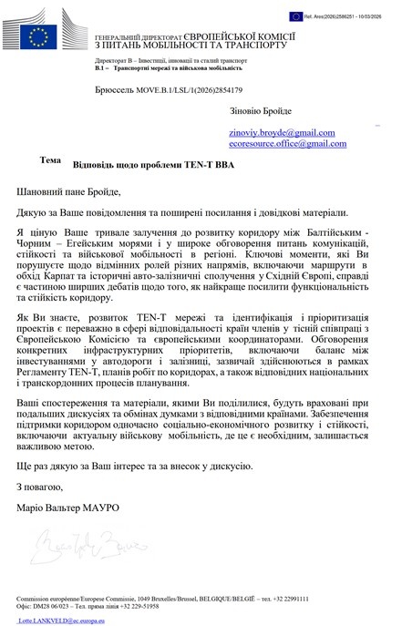 Рис. 2 Підтримка українських ініціатив: а) Генеральним директоратом DG-MOVE Єврокомісії, б) координатором TEN-T BBA коридору. |