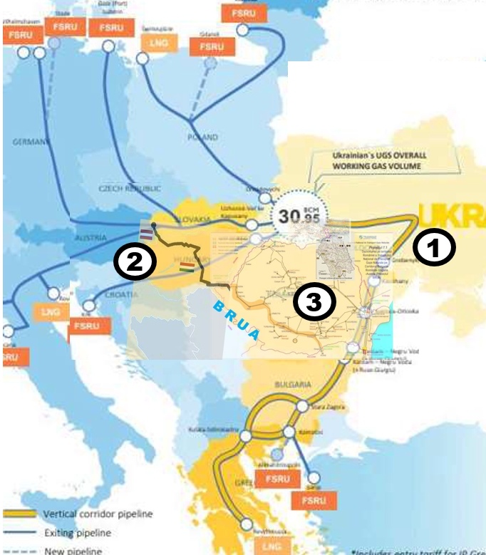 Зиновій БРОЙДЕ, радник голови облдержадміністрації з питань європейської інтеграції та сталого регіонального розвитку, директор ДНТЦ «Екоресурс», кандидат технічних наук Подальше зростання глобального кризового впливу на процеси територіального розвитку і безпеки (С.27) змінює підходи до кризового планування, коли оцінки ризиків та сценаріїв їх запобігання/мінімізації починають мінятися місцями. Йдеться про те, що невизначеність при прогнозуванні ризиків перевищує передбачуваність історично і актуально вивірених напрямів територіально-галузевого розвитку (С.27). З таких позицій слід вибудовувати національну стратегію поведінки, її відстоювання на міжнародному рівні та забезпечувати максимальне регіональне сприяння, зокрема щодо таких макрорегіональних проєктів як Транс’європейський «вертикальний» транспортно-енергетичний коридор. Це поняття в сьогоднішньому просторі Ініціативи Тримор’я (3SI) об’єднує спрямування південних і північних газових потоків до найбільших в Європі українських карпатських сховищ з одночасними можливостями акумулювання електроенергії у найпотужнішому в Європі Дністровському гідроенергоакумулюючому комплексі на тлі відтворених ЄС історичних автозалізничним сполучень «з варяг у греки», зокрема у TEN-T «Балтійське море – Чорне море – Егейське море» (TEN-T BBA), через Волинь, Галичину і Буковину в обхід Карпат. (Рис.1) |