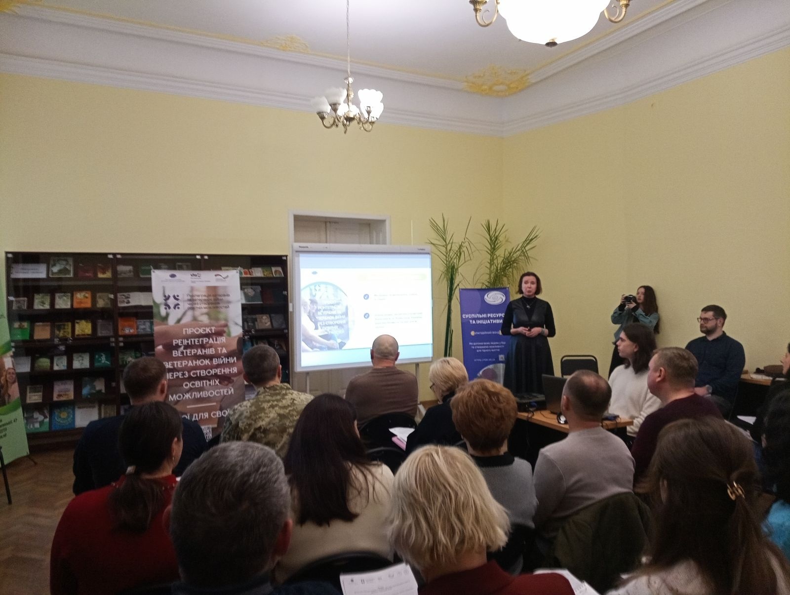 Результати проєкту «Реінтеграція ветеранів і ветеранок та членів їхніх родин через створення освітніх можливостей. Свої для своїх» у Чернівецькій області презентували під час круглого столу, який відбувся 29 січня в обласній універсальній бібліотеці ім. М.Івасюка. Проєкт реалізовувався Благодійним фондом «Суспільні ресурси та ініціативи» у партнерстві з DVV International Ukraine за підтримки Федерального міністерства закордонних справ Німеччини і мав на меті надати доступ ветеранам та їхні сім’ям до знань, навичок та ресурсів для успішної адаптації після служби, зокрема в професійному й соціальному плані. Цільовими групами, з якими велася робота, стали також сім’ї загиблих, безвісти пропалих захисників і тих, хто перебуває в полоні. Стартував проєкт у червні минулого року. «Україна воює не лише за свої території – Україна воює за своїх людей. Моє глибоке переконання в тому, що ветерани, ветеранки і члени їхніх родин – це, власне, той людський капітал, ті люди, за яких варто нам всім триматися, і я переконана, що на них загалом буде триматися і повоєнна Україна», – підкреслила президентка благодійного фонду Олена Танасійчук, розповідаючи про те, що вдалося зробити за цей період. Насамперед, було проведено дослідження, щоб визначити та проаналізувати наявні освітні, психологічні та інші послуги для ветеранів у регіоні, їх відповідність реальним потребам, виявити проблеми, а також розробити практичні рекомендації для вдосконалення цих послуг. На основі цього була створена «Карта можливостей для ветеранів/ветеранок та членів їхніх родин у Чернівецькій області». «Карту можливостей» презентували на організованому БФ «Суспільні ресурси та ініціативи» у партнерстві з DVV International міжсекторальному форумі, присвяченому освіті, працевлаштуванню та реінтеграції ветеранів і членів їхніх родин. Було також узгоджено пріоритетну модель підтримки «освіта–менторство–працевлаштування». В рамках проєкту було проведено низку комплексних освітньо-реінтеграційних заходів, завдяки яким учасники та учасниці мали змогу здобути нову професію, навчитися основ бізнесу, виграти грант на відкриття власної справи, отримати менторську та психологічну підтримку. Завдяки цьому 45 учасників та учасниць пройшли сертифіковане навчання на професійних курсах «Основи бухгалтерського обліку», «Основи масажу» та «Нігтьовий сервіс». 277 осіб отримали кар’єрні, професійні, психологічні групові та індивідуальні консультації і менторський супровід. Було проведено серію тренінгів «Сучасні ІТ-професії: що варто знати ветерану»; «Ефективні комунікації для роботи та бізнесу», «Фінанси для нефінансистів», «ФОП: від ідеї до результату», «Написання та менеджмент проєктів». Діяв розмовний клуб «Добровольці української мови». Велика частина зусиль, за словами Олени Танасійчук, була спрямована на бізнес-школи. Дві з них проводилися офлайн в с. Лужани Мамаївської громад та с. Рідківці Магальської громади, ще одна – онлайн. У них взяли участь 30 учасників та учасниць. Програма бізнес-шкіл передбачала роботу над власною бізнес-ідеєю та перевірку її життєздатності, формування ціннісної пропозиції та основ маркетингової стратегії, фінансове планування, розрахунки собівартості та джерела стартового капіталу, розробку повного бізнес-плану та підготовку до його бізнес-зах