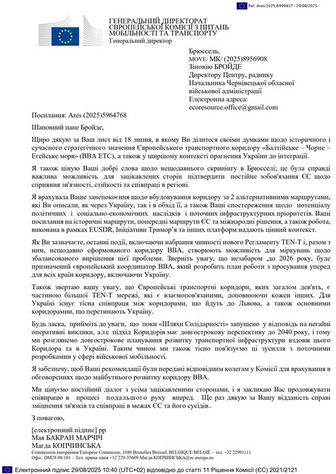 Рис. 2 Підтримка українських ініціатив: а) Генеральним директоратом DG-MOVE Єврокомісії, б) координатором TEN-T BBA коридору. |